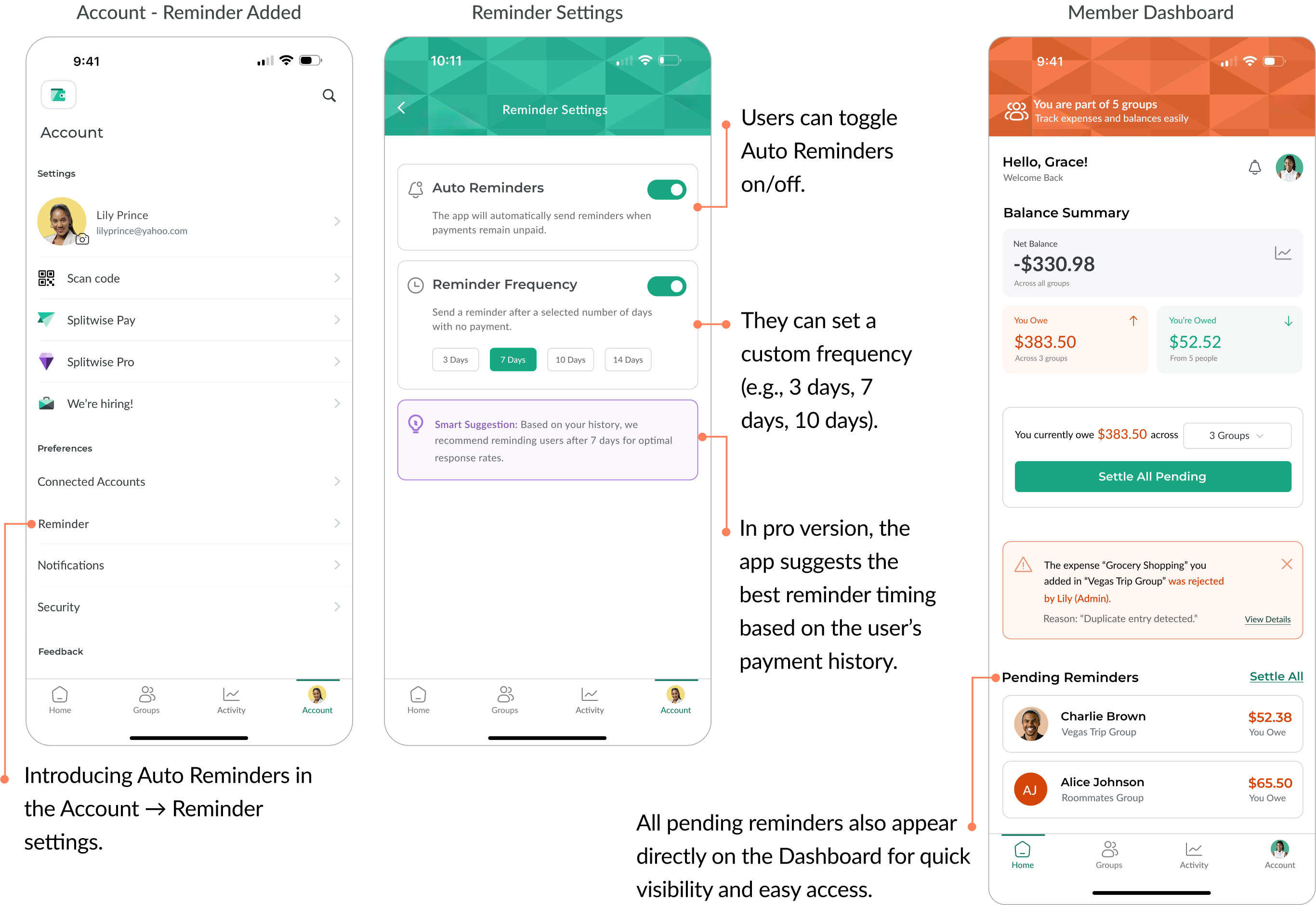 We brought our ideas to life with features like a personal dashboard, group admin controls, smart auto-reminders, and proxy payer mode.