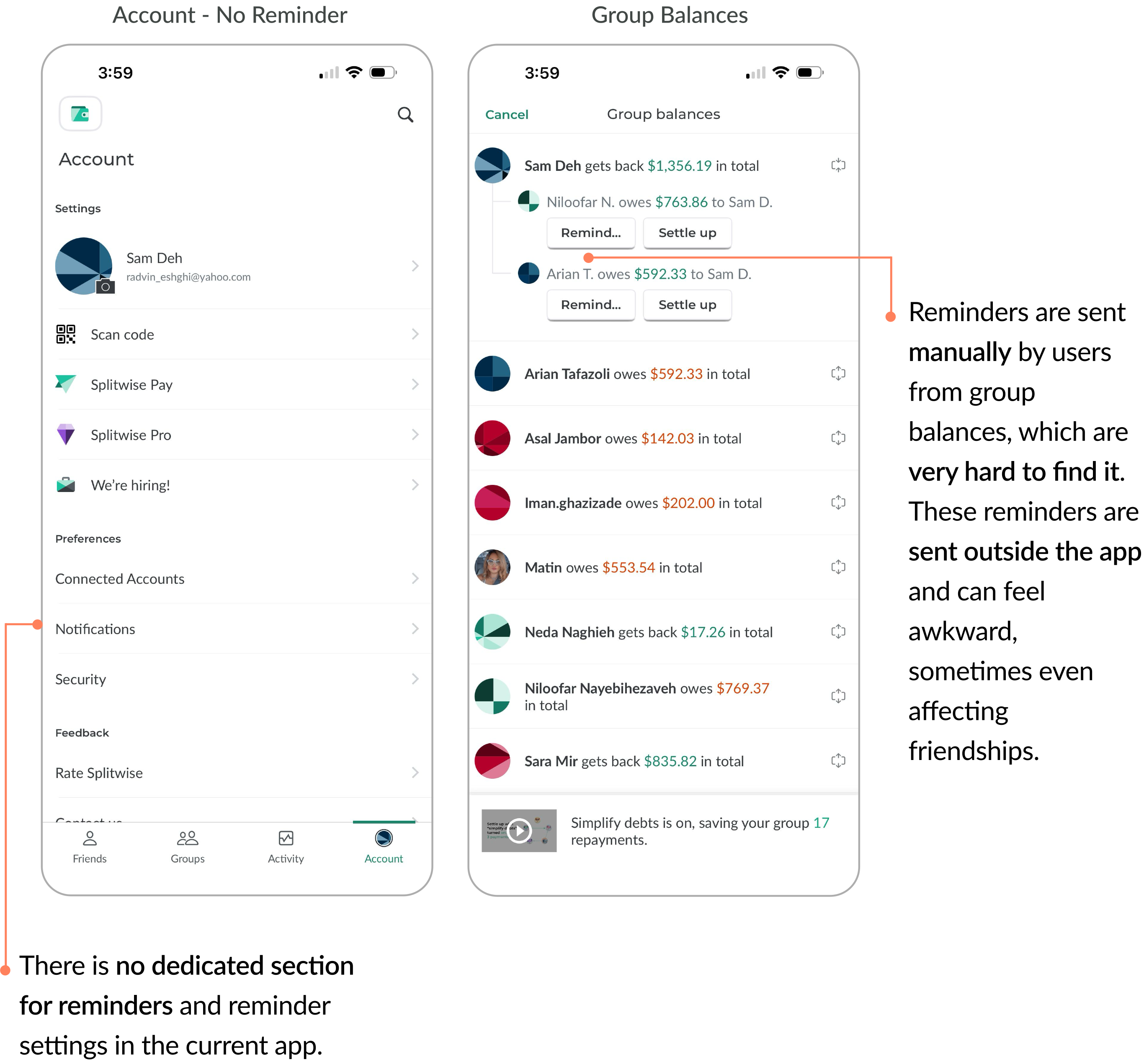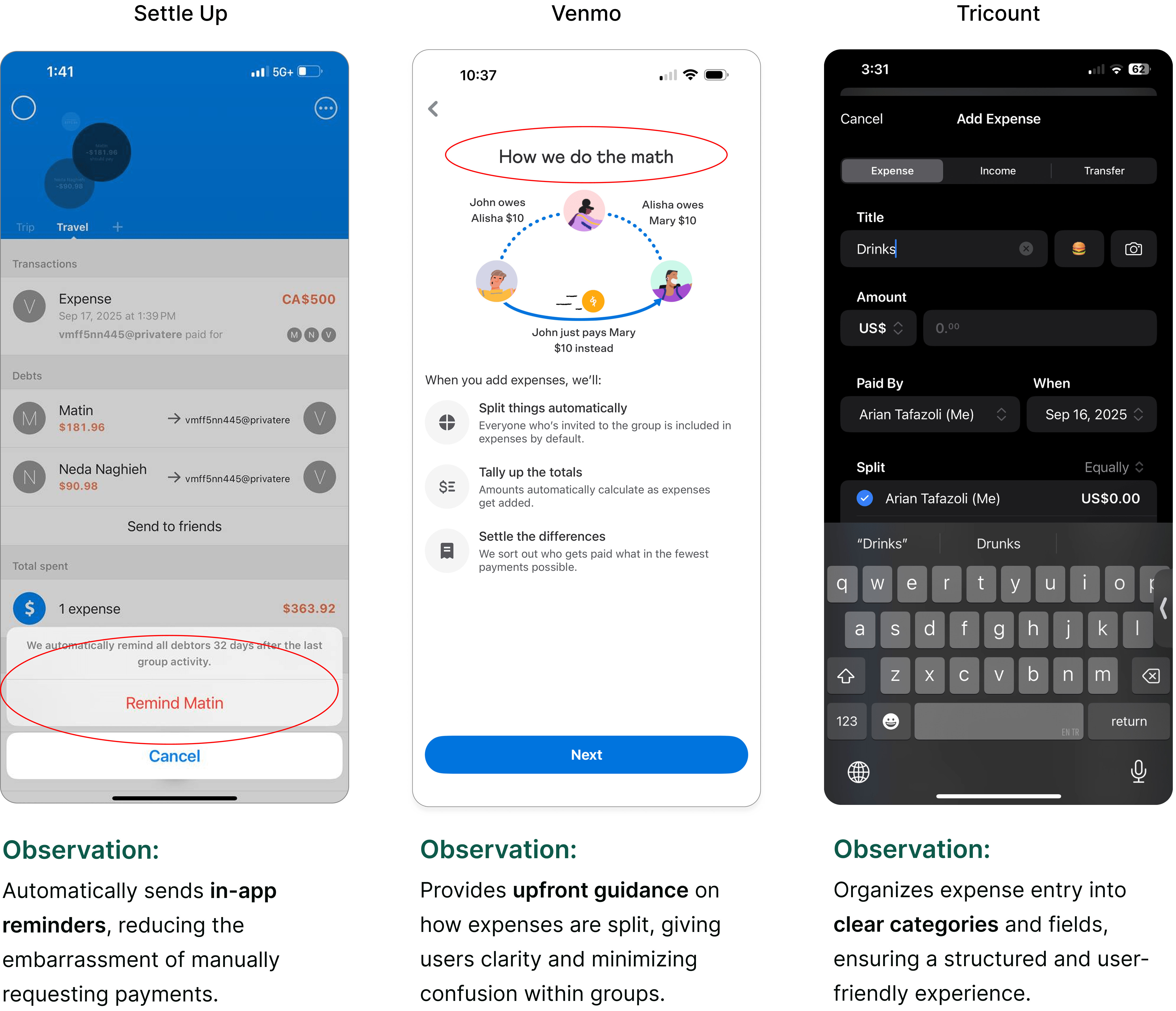 Ultimately, user feedback revealed friction between fairness, transparency, and friendship, showing that managing money isn’t just about numbers, it’s about maintaining trust.