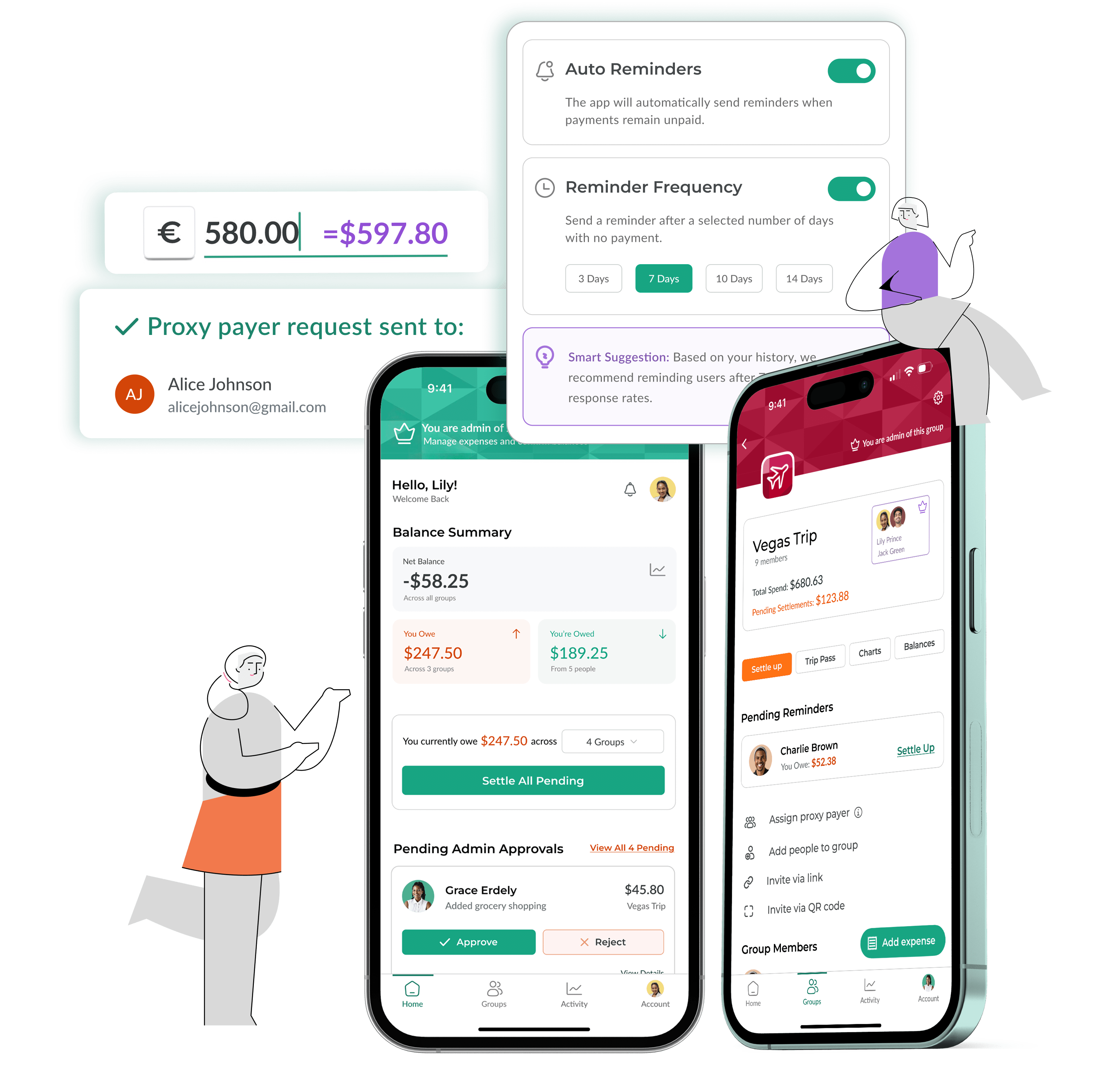 Introduced admin roles, proxy payers, auto reminder, and multi-currency support to make expense management effortless and transparent.
